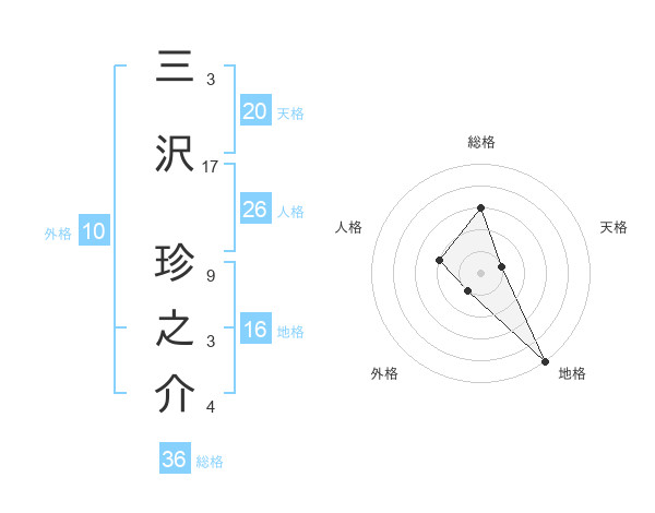 三沢 珍之介さんの天格は20画の1点!