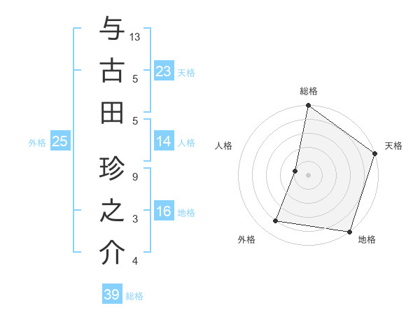 与古田 珍之介さんを姓名の画数から五運を鑑定