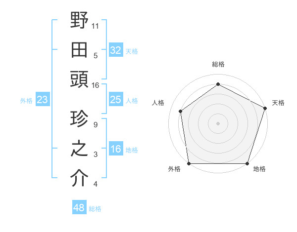 野田頭 珍之介さんを姓名の画数から五運を鑑定