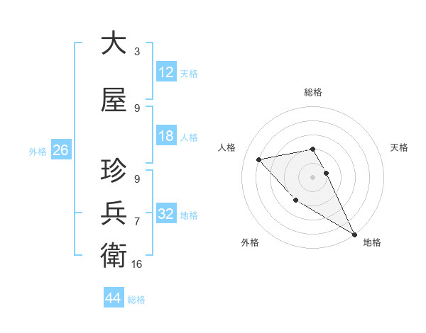 大屋 珍兵衛さんの総格は44画の2点!