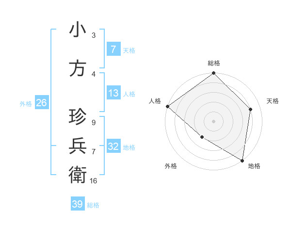 小方 珍兵衛さんの総格は39画の5点!