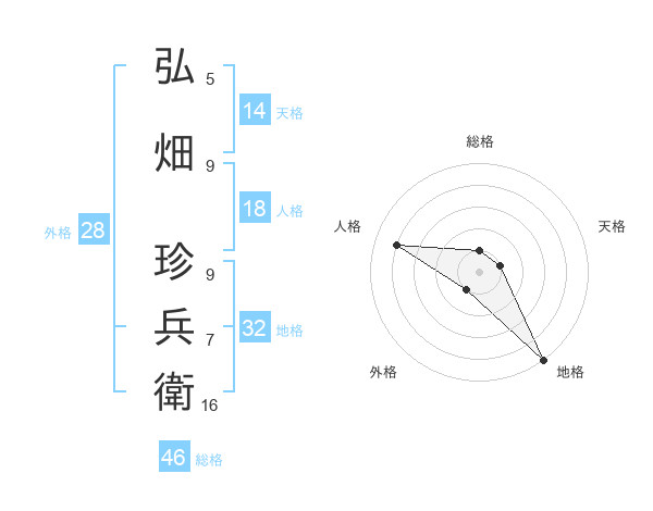 弘畑 珍兵衛さんを姓名の画数から五運を鑑定