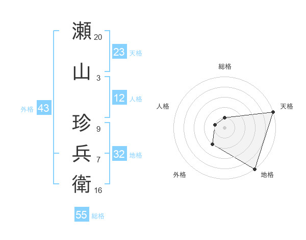 瀬山 珍兵衛さんを姓名の画数から五運を鑑定