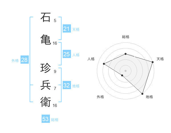 石亀 珍兵衛さんの総格は53画の3点!