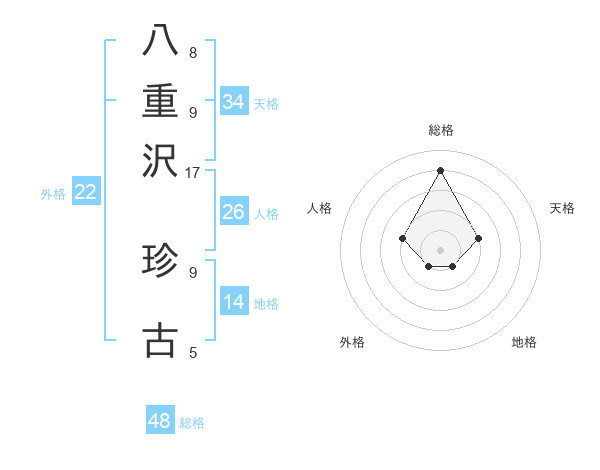 八重沢 珍古さんを姓名の画数から五運を鑑定