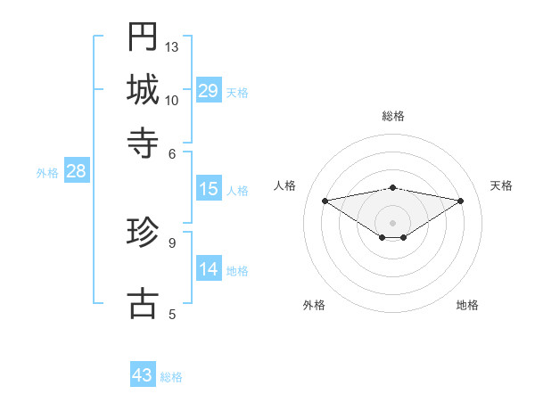 円城寺 珍古さんの総格は43画の2点!
