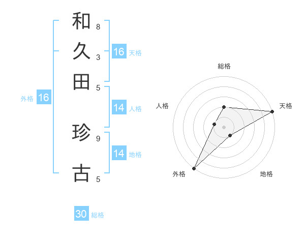 和久田 珍古さんを姓名の画数から五運を鑑定