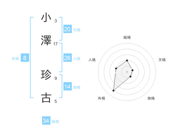小澤 珍古さんの総格は34画の2点!