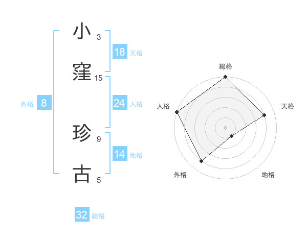 小窪 珍古さんを姓名の画数から五運を鑑定