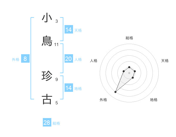 小鳥 珍古さんを姓名の画数から五運を鑑定