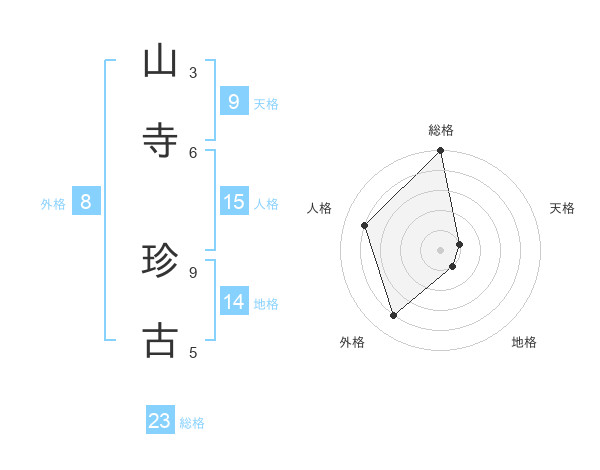 山寺 珍古さんの総格は23画の5点!
