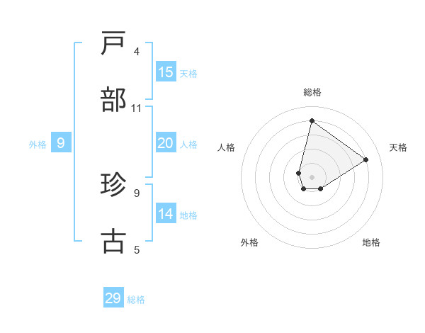 戸部 珍古さんを姓名の画数から五運を鑑定