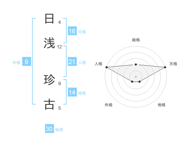 日浅 珍古さんを姓名の画数から五運を鑑定