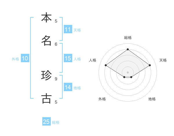 本名 珍古さんの天格は11画の4点!