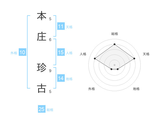 本庄 珍古さんの人格は15画の4点!