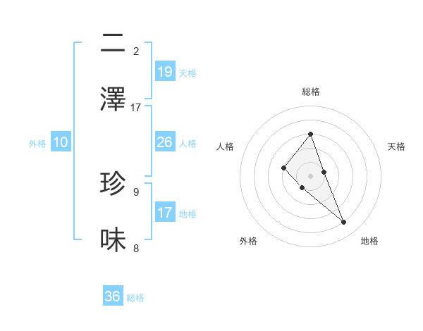 二澤 珍味さんを姓名の画数から五運を鑑定
