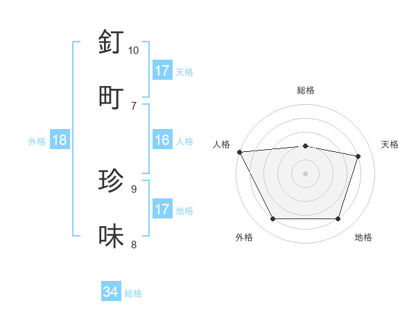 釘町 珍味さんの地格は17画の4点!
