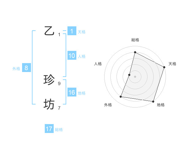 乙 珍坊さんを姓名の画数から五運を鑑定