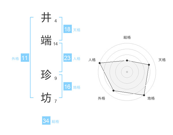 井端 珍坊さんの総格は34画の2点!