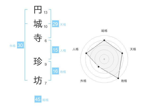 円城寺 珍坊さんを姓名の画数から五運を鑑定
