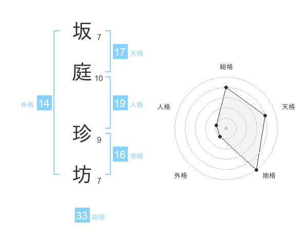 坂庭 珍坊さんの総格は33画の4点!