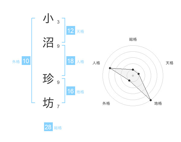 小沼 珍坊さんの総格は28画の1点!