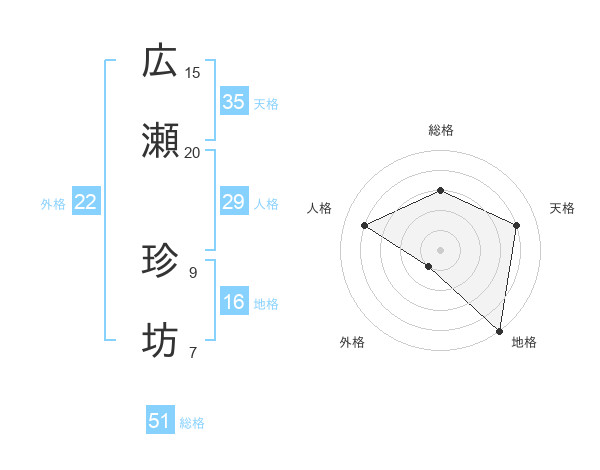 広瀬 珍坊さんの総格は51画の3点!