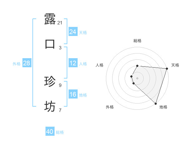露口 珍坊さんを姓名の画数から五運を鑑定