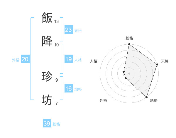 飯降 珍坊さんの総格は39画の5点!