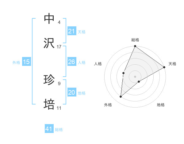 中沢 珍培さんの総格は41画の5点!