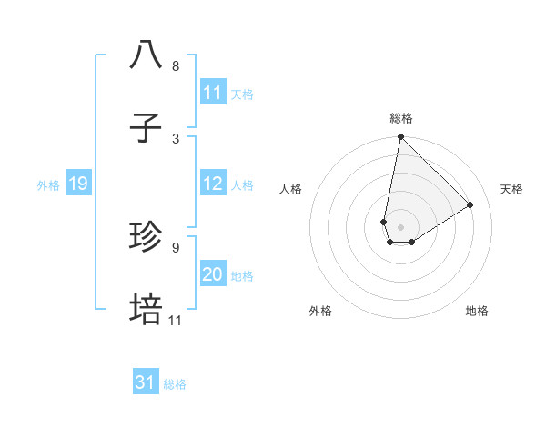 八子 珍培さんの総格は31画の5点!