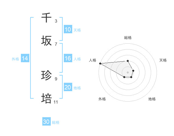 千坂 珍培さんの地格は20画の1点!