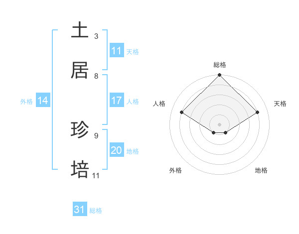 土居 珍培さんの総格は31画の5点!