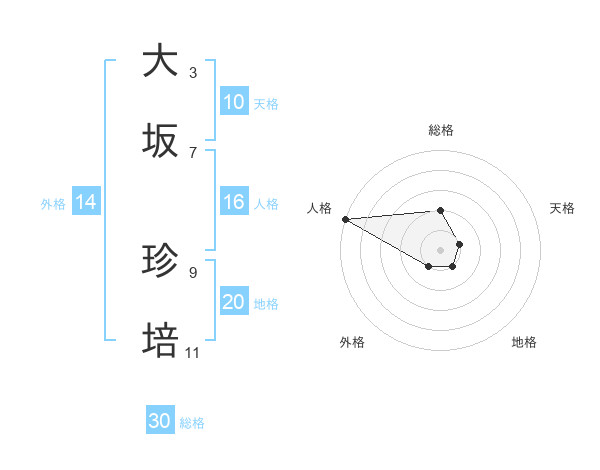 大坂 珍培さんを姓名の画数から五運を鑑定