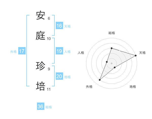 安庭 珍培さんの総格は36画の3点!