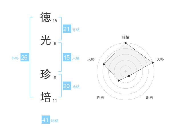 徳光 珍培さんを姓名の画数から五運を鑑定