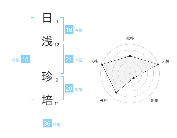 日浅 珍培さんの天格は16画の5点!