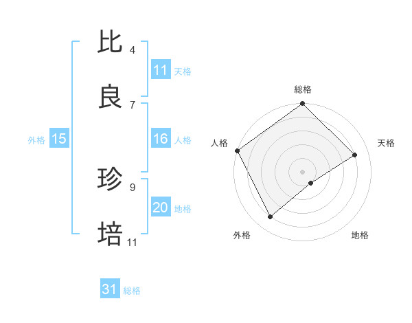比良 珍培さんの総格は31画の5点!