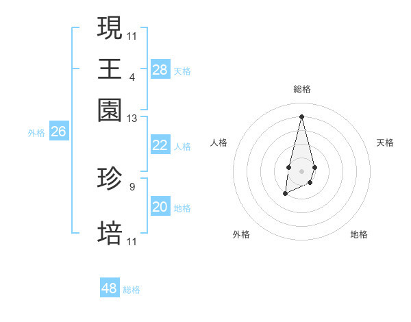 現王園 珍培さんを姓名の画数から五運を鑑定