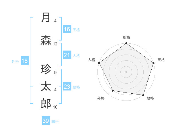 月森 珍太郎さんの総格は39画の5点!