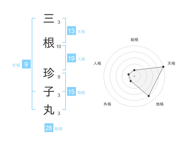 三根 珍子丸さんを姓名の画数から五運を鑑定