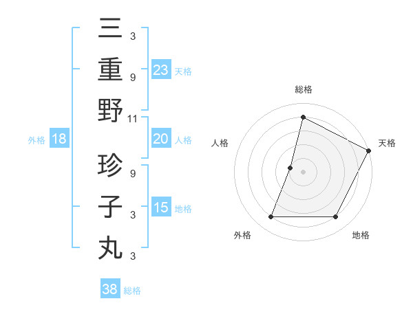 三重野 珍子丸さんの天格は23画の5点!