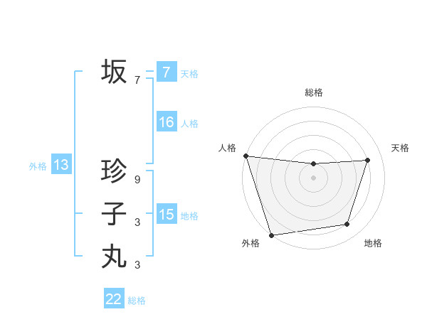 坂 珍子丸さんを姓名の画数から五運を鑑定