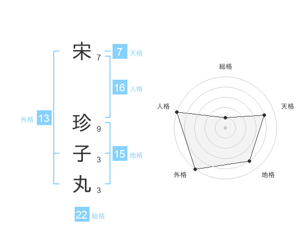 宋 珍子丸さんの外格は13画の5点!
