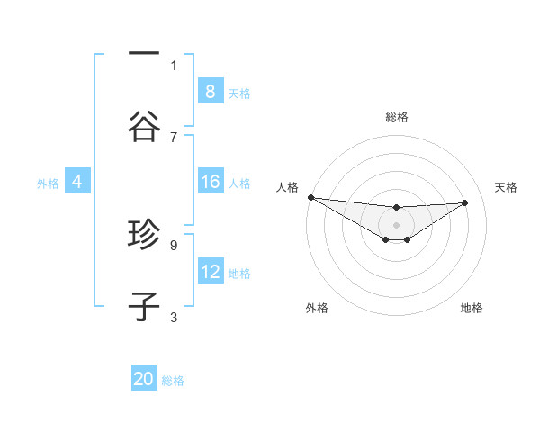 一谷 珍子さんの総格は20画の1点!