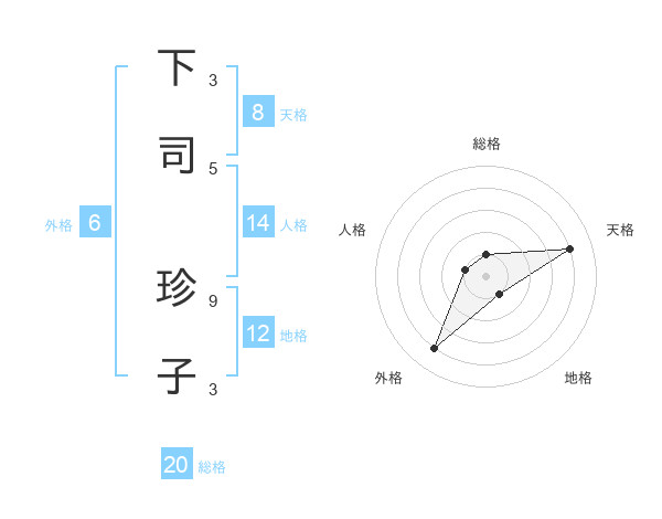 下司 珍子さんの総格は20画の1点!