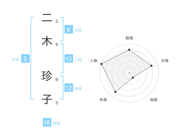 二木 珍子さんの人格は13画の5点!