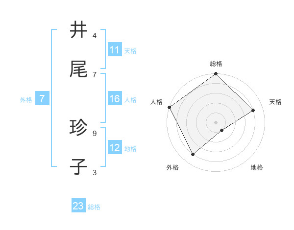 井尾 珍子さんの天格は11画の4点!