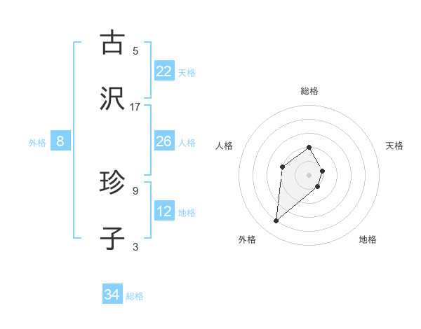 古沢 珍子さんの天格は22画の1点!