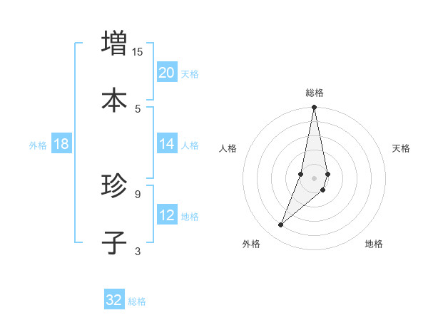 増本 珍子さんの総格は32画の5点!